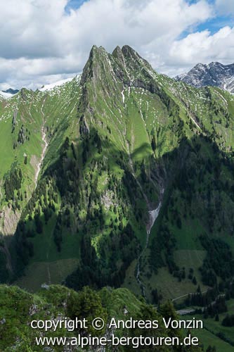 Belohnt wurde ich dafür mit ersten Erfahrungen im berüchtigten Allgäuer Steilgras (der Südostgrat zum Gipfel war nicht ohne) und einem phänomenalen Ausblick auf die Königin der Allgäuer Steilgrasberge: die Höfats.