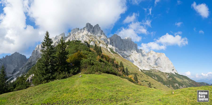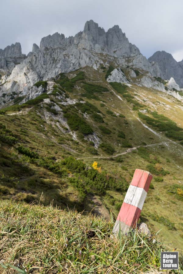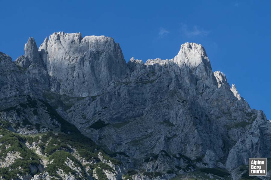 AT › Tirol › Kaisergebirge › Wilder Kaiser Regalmwand (Regalpwand) (2.208 m) Von Süden über den Gildensteig auf die Regalmwand T4+ II Schwere Bergtour Vergrößerung der Bilder durch anklicken zur Tourenbeschreibung